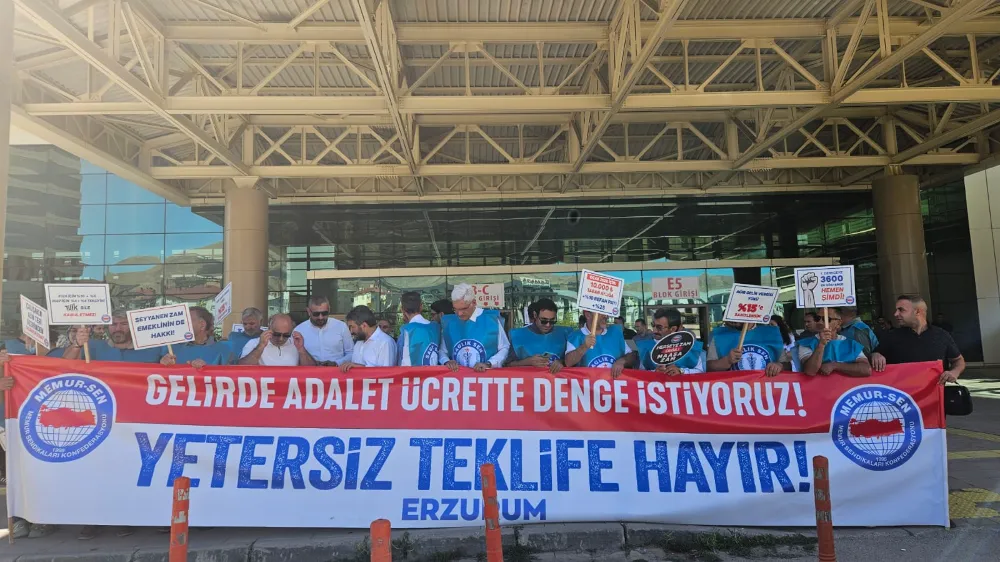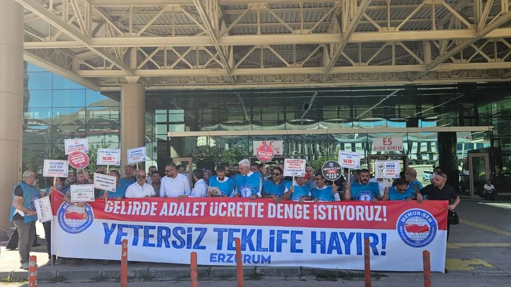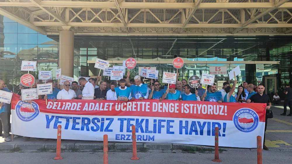 Erzurum Şehir Hastanesi önünde bir araya gelen Sağlık-Sen üyeleri, 8. Dönem Toplu Sözleşme görüşmelerinde kamu işveren heyetinin sunduğu zam teklifine sert tepki gösterdi. Sağlık-Sen Erzurum Şube Başkanı Ramazan Tortum yaptığı basın açıklamasında, memurların emeğinin yok sayıldığı ve teklifin kesinlikle kabul edilemez olduğu vurgulandı.