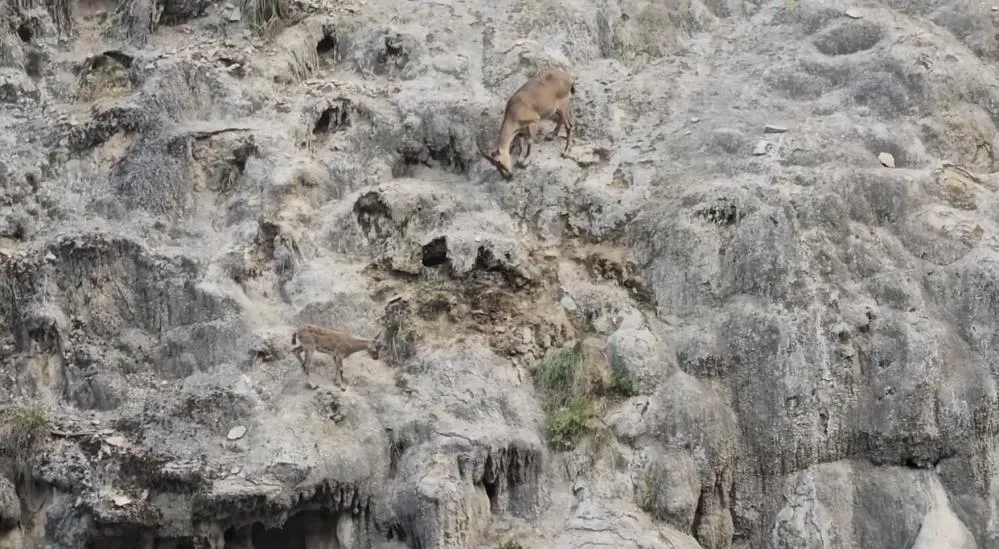 Elazığ'ın Karakoçan ilçesi ile Tunceli'nin Mazgirt ilçesi arasında bulunan Bağin kaplıcaları yakınlarında sarp kayalıklara tırmanma özellikleri ile tanınan koruma altındaki dağ keçileri bir vatandaş tarafından görüntülendi. Sarp kayalıklarda yiyecek arayan dağ keçileri daha sonra gözden kayboldu. O anlar cep telefonu ile kayıt edildi.