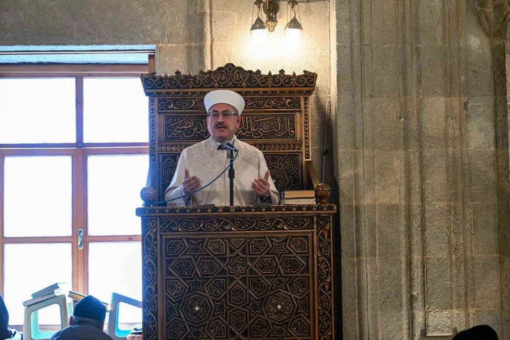 Öğle namazında düzenlenen program kapsamında, vatan müdafaasında canlarını feda eden aziz şehitlerimizin ruhları için Kur’an-ı Kerim tilaveti sunuldu ve Mevlid-i Şerif okundu. İl Müftüsü Yaşar Çapçı, programda gerçekleştirdiği sohbet ve duada şehitlerimizi rahmet ve minnetle anarak, birlik ve beraberlik vurgusu yaptı.