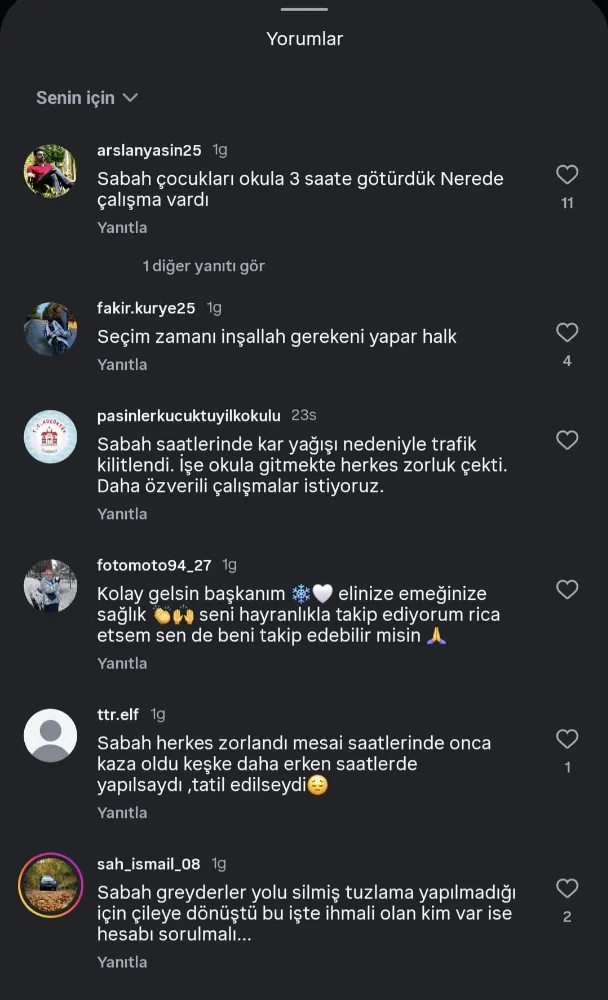 En büyük tepki ise sabah saatlerinde çocuklarını okula yetiştirmeye çalışan ebeveynlerden geldi. Yasin Arslan adlı kullanıcı, "Sabah çocukları okula 3 saatte götürdük, nerede çalışma vardı?" sorusunu sorarken, Ahmet Güray adlı bir diğer sosyal medya kullanıcısı, “Kesin teyakkuzdasınız! İnsanlar sabah 2 saatte işe zor gitti, çocuklar yollarda dondu,” sözleriyle belediyenin "hazırız" açıklamasına ateş püskürdü.