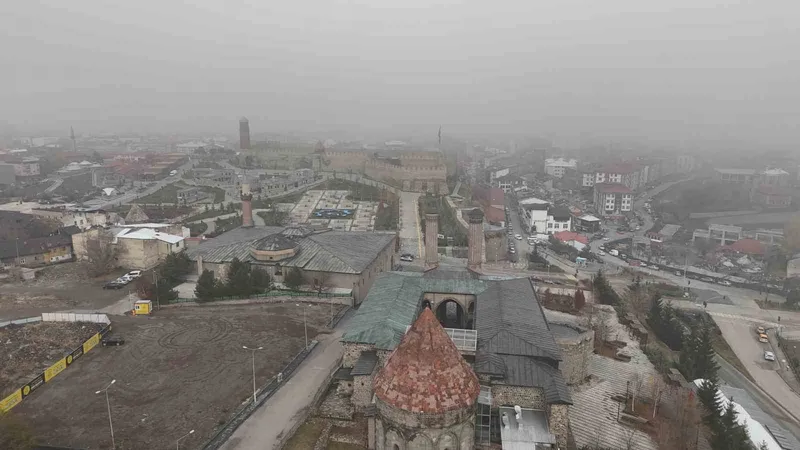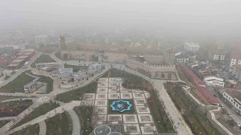 Erzurum Valiliği, kent merkezindeki sisli havayı bir kliple paylaştı. Paylaşımda şehrin tarihi, turistlik ve doğal mekanları dron ile görüntülenirken, "Palandöken’in eteklerinden yükselen beyaz örtü, bazen bir masal diyarını andıran atmosferiyle, bazen de tarihten izler taşıyan kadim bir hatıra gibi Erzurum’u kucakladı. Taş yapıların arasından süzülen sis, her köşeye ayrı bir huzur bırakırken, uzaktan beliren siluetler şehrimizin asaletini daha da belirgin kıldı. Soğuk havanın berraklığıyla bütünleşen bu manzara, adeta bir fotoğraf karesine dönüşmüş şiir tadında görüntüler sundu. Bu sisli sabahın içinde Erzurum, hem gizemli hem de etkileyici yönünü bir kez daha gözler önüne serdi. Her nefeste tazelenen soğuk hava ve her adımda hissedilen tarih-doğa uyumu, şehrimizin güzelliğini yeniden hatırlattı" denildi.