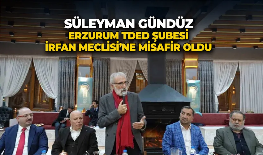 Merhum Cumhurbaşkanı Turgut Özal’ın Danışmanı, Bosna Savaşı ve sonrasında Bilge Lider Aliya İzzetbegoviç’in 11 yıl boyunca yol arkadaşı, Cumhurbaşkanı Recep Tayyip Erdoğan’ın yakın arkadaşı, 22. Dönem AK Parti Milletvekili olan Süleyman Gündüz, TDED Erzurum Şubesi İrfan Meclisi’de "Bosna’dan Gazze’ye İnsanlığın Yeni Bir Dil Arayışı" başlıklı konuşma yaptı. Programa Erzurum Büyükşehir Belediye Başkanı Mehmet Sekmen ile Atatürk Üniversitesi Rektörü Prof.Dr. Ahmet Hacımüftüoğlu da iştirak etti.