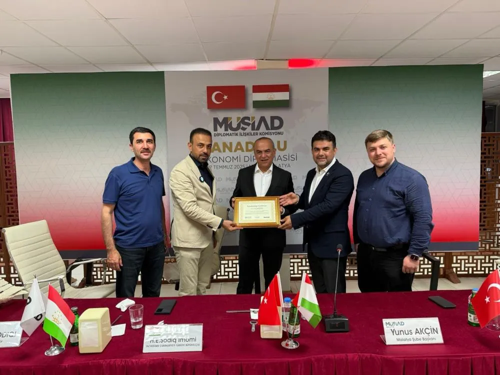 MÜSİAD Genel Merkez Diplomatik İlişkiler Komisyonu üyelerinin de katıldığı programda konuşan MÜSİAD Malatya Şube Başkanı Yunus Akçin, Tacikistan ile Türkiye arasındaki buluşmanın sadece diplomatik bir nezaket ziyareti olmadığını, aynı zamanda ticaret, yatırım ve ortak kalkınma iradesinin bir göstergesi olduğunu ifade etti. Akçin, "2024 yılı itibarıyla Türkiye, Tacikistan’ın ihracatında yüzde 14 pay ile üçüncü, ithalatında ise yüzde 5,8 pay ile dördüncü sırada yer almakta. Bu tablo, karşılıklı ticaret potansiyelinin daha da artırılması adına umut verici bir zemin sunuyor" dedi.