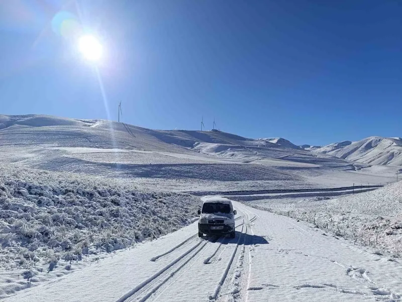 Ağrı’nın Taşlıçay ilçesinde etkili olan kar yağışının ardından Gündoğdu köyü ve çevresi beyaza büründü.
