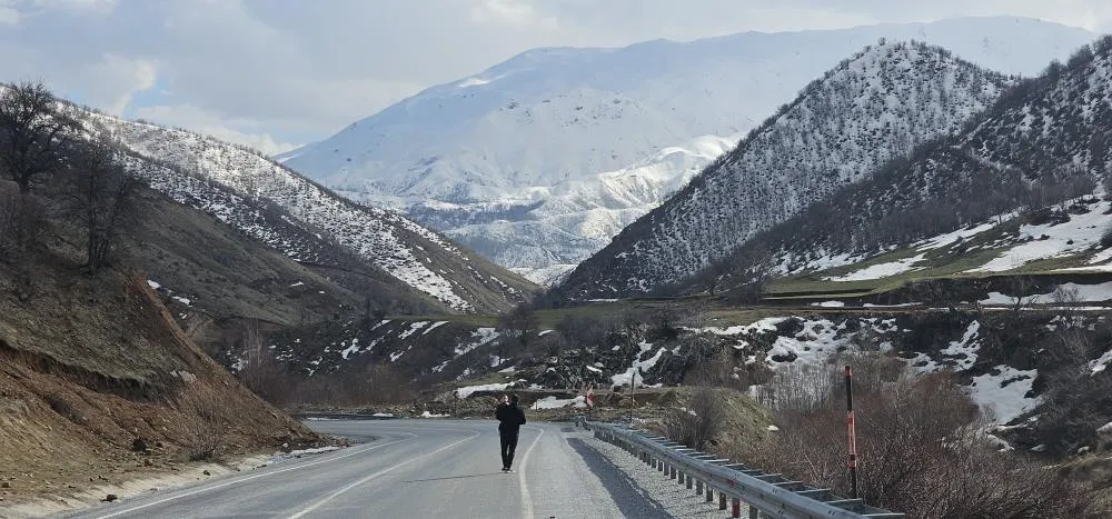 Bitlis’in Tatvan ile Hizan ilçeleri arasında uzanan dağlık yol güzergâhı, kış ve baharın iç içe geçtiği eşsiz görüntüsüyle görenleri hayran bırakıyor.