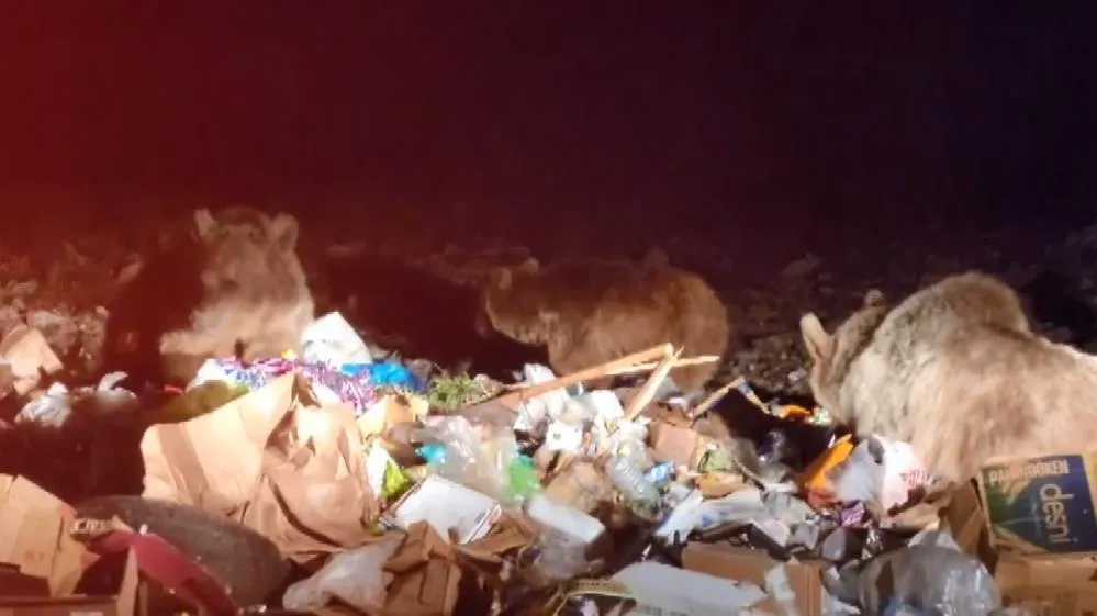 Sarıkamış çöplüğünde rahatça dolaştığı ve atıkları karıştırdığı anlar kameralara yansıdı. Yavrularıyla birlikte sokak köpeklerine aldırış etmeden karınları doyuran boz ayılar daha sonra sarıçam ormanlarının yolunu tutuyor. Boz ayıların çöplükte yiyecek araması, ayıları görmek için bölgeye giden vatandaşların cep telefonuyla anbe an kaydedildi.