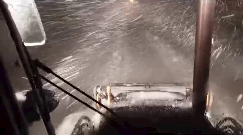 Karayolları ekipleri Palandöken yolunda karla mücadele çalışmalarını sürdürürken araçların geçişine izin verilmiyor.
