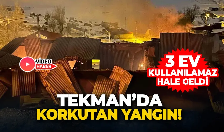 Erzurum’un Tekman ilçesinde çıkan yangında 3 ev kullanılamaz hale geldi.