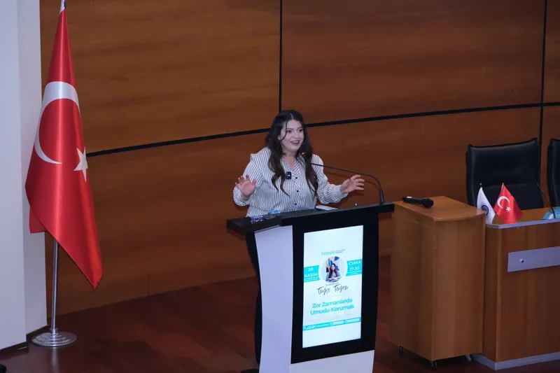 TÜGVA Palandöken İlçe Temsilciliği tarafından düzenlenen "Zor Zamanlarda Umudu Korumak" söyleşisi, gençlerin yoğun katılımıyla gerçekleştirildi. Program, psikolojik dayanıklılığı artırma ve umut duygusunu koruma konularına odaklandı. Program, TÜGVA Palandöken İlçe Temsilcisi Yusuf Halis’in kısa açılış konuşmasıyla başladı. Halis, gençlerin katılımına teşekkür ederek etkinliğin verimli geçmesini temenni etti.