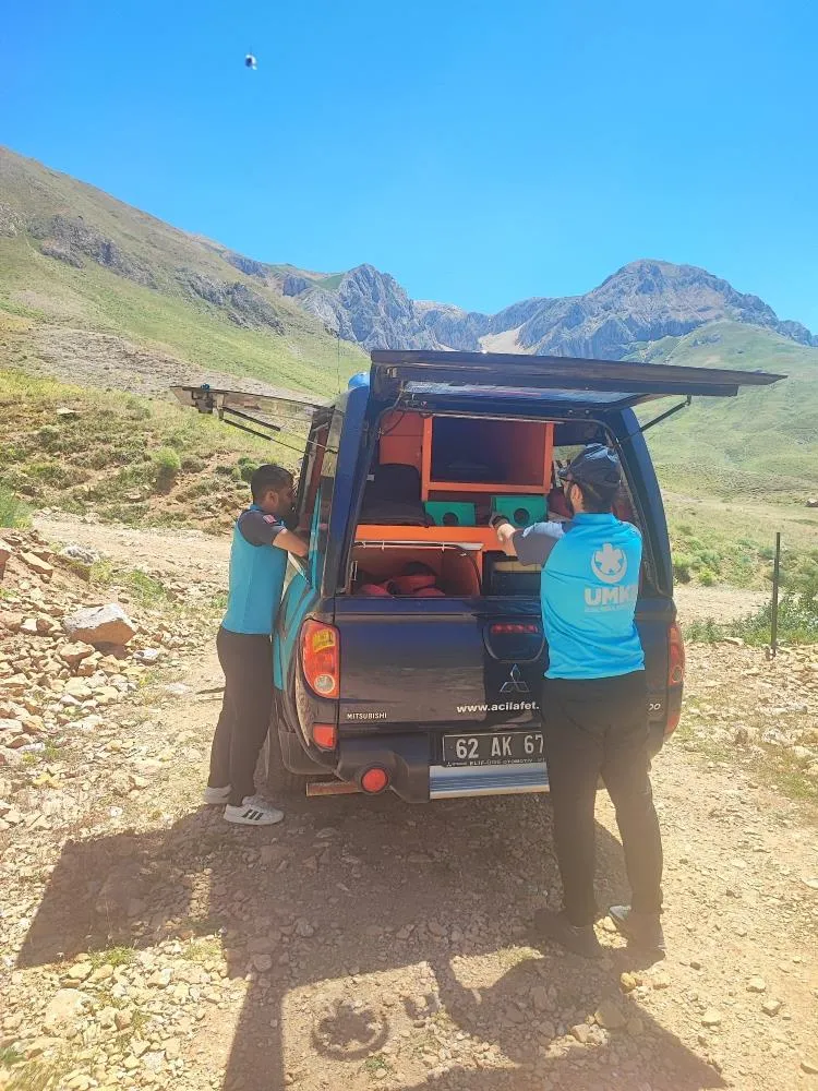 Edinilen bilgiye göre, Pülümür ilçesine bağlı Kocatepe köyü sınırlarında yer alan Buyer Dağı kırsalındaki Merg Yaylası'nda, hayvancılıkla uğraşan 50 yaşındaki H.G., rahatsızlandı. 112 Acil Çağrı Merkezi'ne yapılan ihbarda, kişinin tansiyon ve kronik rahatsızlıkları nedeniyle genel durumunun bozulduğu ve kendisine ulaşılamadığı bildirildi. İhbarın ardından bölgeye UMKE, sağlık ve jandarma ekipleri sevk edildi. Zorlu arazi şartları nedeniyle ambulans Kocatepe köyü yakınında konuşlandırılırken, UMKE ekipleri jandarma desteğiyle yaylaya yaya olarak intikal etti. Ekiplerin koordineli çalışmaları sonucunda H.G.'ye ulaşılarak olay yerinde ilk tıbbi müdahalesi yapıldı. Ardından hasta, UMKE ekiplerinin refakatiyle ambulansın bulunduğu noktaya taşındı ve burada 112 Acil Sağlık ekiplerine teslim edildi. H.G., Tunceli Devlet Hastanesi'ne sevk edilerek tedavi altına alındı.