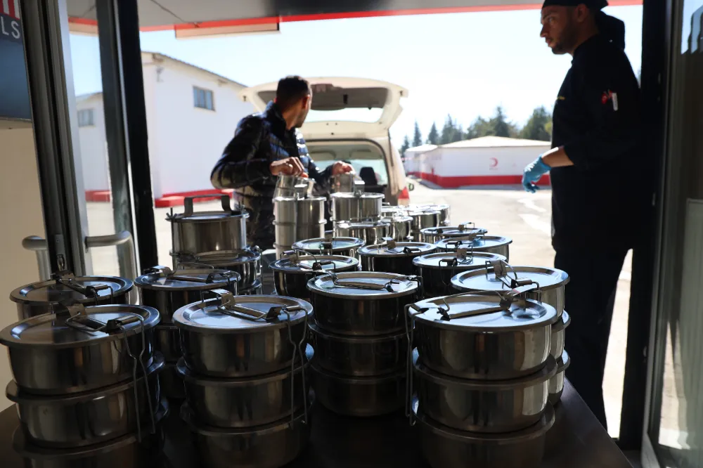 Türk Kızılay Elazığ Şubesi tarafından kurulan 12 bin kişi kapasiteli aşevinde, şimdilik 200 ihtiyaç sahibine her gün sıcak yemek ulaştırılıyor.