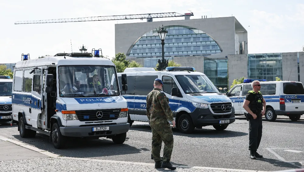 Zelenksiy'in sürpriz Berlin ziyareti nedeniyle başkentte yoğun güvenlik önlemleri alındı. Başbakanlık çevresine demir bariyerlerle güvenlik çemberi oluşturuldu, sokaklar araç ve yaya trafiğine kapatıldı. Başbakanlık yakınındaki Alman Meclisi (Bundestag) metro istasyonunda yolcu iniş ve binişleri yasaklandı. Atlı polisler ile keskin nişancılar Başbakanlık çevresindeki binalara konuşlandırıldı.