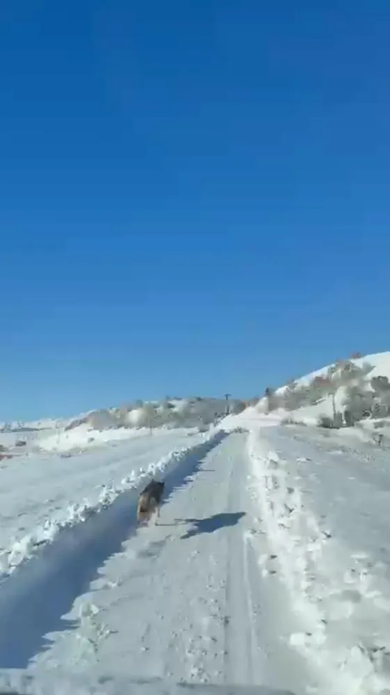 Bingöl’ün Genç ilçesinde hasta nakli için yola çıkan UMKE ekiplerine, bir kurt yol boyu uzun süre koşarak eşlik etti.