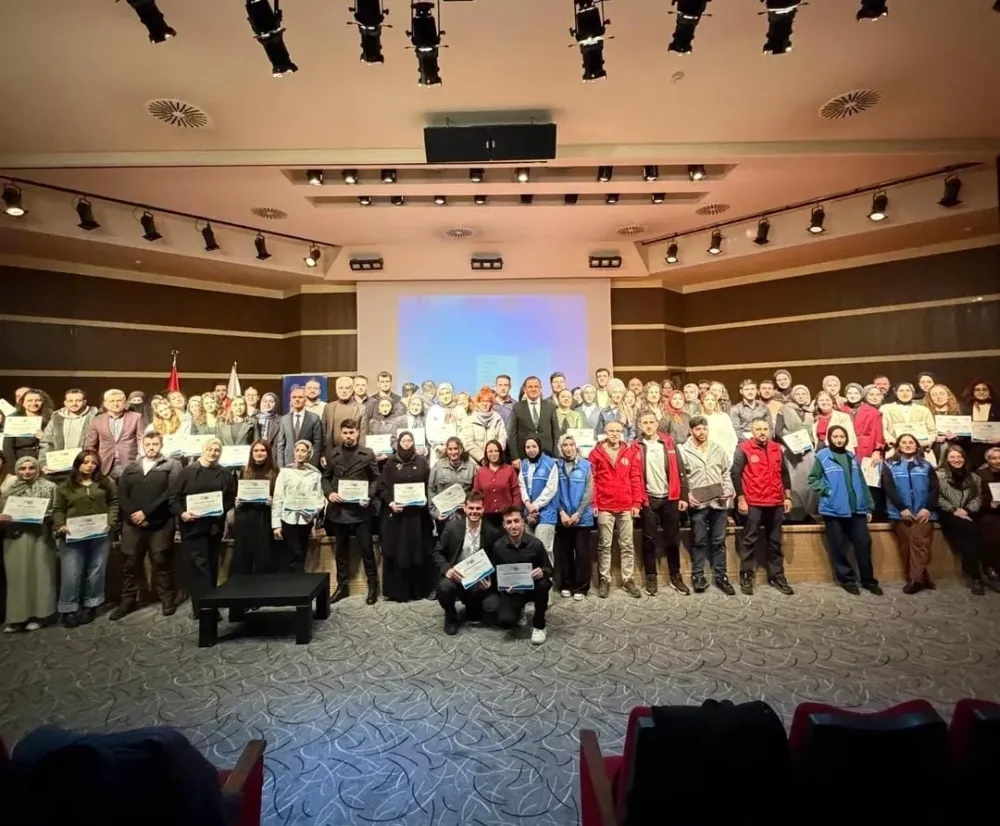 Sertifika töreninde eğitimi başarıyla tamamlayan gençlere belgeleri verilirken, organizasyon boyunca emeği geçen ekip üyelerine teşekkür edildi. Program, gençlerin gelişimine katkı sunma hedefi doğrultusunda atılan önemli adımlardan biri olarak değerlendirildi.