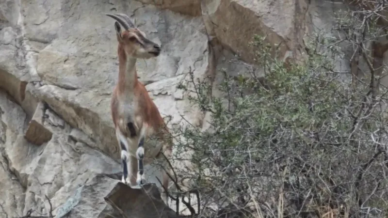 Erzurum’un Uzundere ilçesinde dağ keçileri yavruları ile birlikte görüntülendi.