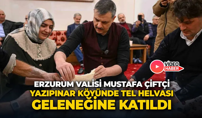 Erzurum Valisi Mustafa Çiftçi, Yazıpınar köyünde düzenlenen tel helvası yapımına katılarak, kentin köklü kış geleneklerinden birine eşlik etti.