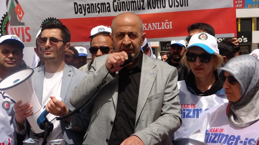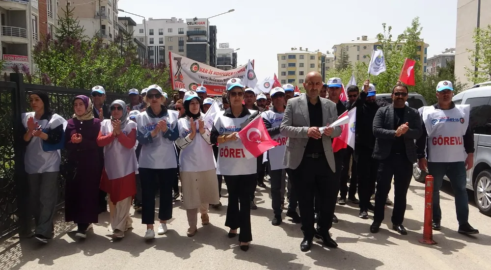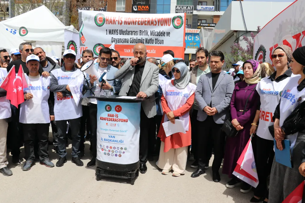 İpekyolu Belediyesi önünde kurulan çadırda 364 gündür işlerine geri dönmek için mücadele veren işçiler, Hak-İş Van İl Başkanlığı öncülüğünde 1 Mayıs’ı kutladı. Burada kısa bir yürüyüşün ardından açıklamada bulunan Hizmet-İş Sendikası Van Şube Başkan Yardımcısı Metin Yüksel Sevinç, geçen yıl işçi bayramından bir gün sonra DEM Parti’li belediyeler tarafından yüzlerce işçinin haksız ve hukuksuz bir şekilde işten çıkarıldıklarını hatırlatarak, "İpekyolu Belediyesi başta olmak üzere akabinde Van Büyükşehir Belediyesi, VASKİ, Tuşba ve Gevaş belediyelerinde haksız ve hukuksuz yere işten, emeğinden, aşından edinilen işçilerimiz oldu. Bizler Hak-İş Sendikası olarak 364 gündür burada eylem çadırımızı kurmuşuz. Bu eylem çadırımız süresizdir. Emekçi ve işçilerimiz emeklerinin başına dönene kadar, sendika olarak işçilerimizle beraberiz. Bu konuları yargı sürecine taşıdık ve Allah’a şükür 300’ün üzerinde dosyamız mahkemeyi kazandı. Tabi işçileri hukuksuz yere işten çıkaranlar bu süreci engelleyebilmek için bütün kötü yolları denediler ama bütün bu zorluklara rağmen bizler işe iade davalarını kazanıyoruz. En büyük hedefimiz, bütün işçi arkadaşlarımız işlerine dönene kadar burada mücadelemiz devam edecektir" dedi.