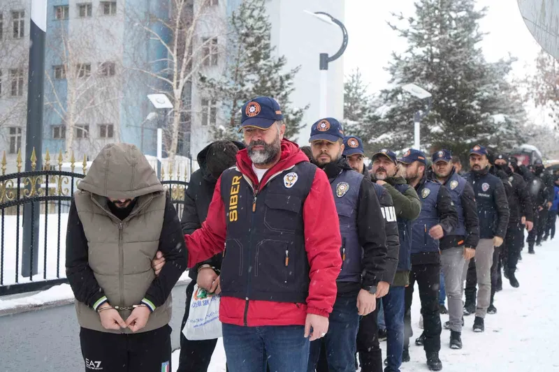 Erzurum merkezli 29 ilde düzenlenen siber dolandırıcılık operasyonunda 68 şüpheli gözaltına alındı. Erzurum Cumhuriyet Başsavcılığı koordinesinde Emniyet Genel Müdürlüğü Siber Suçlarla Mücadele Daire Başkanlığı ile İl Emniyet Müdürlüğü Siber Suçlarla Mücadele ve İstihbarat şubeleri ekiplerinin ortak çalışmasında, yasal araç kiralama web sitelerinin sahteleri oluşturulup, oltalama yöntemiyle dolandırıcılık yapıldığı tespit edildi. Bunun üzerine belirlenen şüpheliler 5 ay boyunca fiziki ve teknik takibe alındı. Siber Suçlarla Mücadele Şube Müdürlüğü, şüphelilerin banka hesaplarında 2 milyar 232 milyon 735 bin 866 lira hareketlilik tespit etti. Erzurum merkezli düzenlenen operasyonda Adana, Antalya, Amasya, Balıkesir, Bitlis, Bolu, Burdur, Diyarbakır, Eskişehir, Gaziantep, Hakkari, Hatay, İstanbul, İzmir, Kayseri, Kahramanmaraş, Kilis, Kütahya, Malatya, Mardin, Mersin, Muş, Osmaniye, Trabzon, Karabük, Van, Yalova ve Kocaeli’de belirlenen adreslere düzenlenen eş zamanlı operasyonda 68 şüpheli yakalandı. Adreslerde yapılan aramalarda 2 ruhsatsız tabanca, şarjör ve çok sayıda fişek, 2 pompalı av tüfeği, 4 uyuşturucu hap, çok sayıda dijital materyal ile sim kart ele geçirildi. Emniyetteki işlemlerinin ardından sağlık kontrolünden geçirilen şüpheliler, alınan güvenlik önlemleri altında adliyeye sevk edildi.