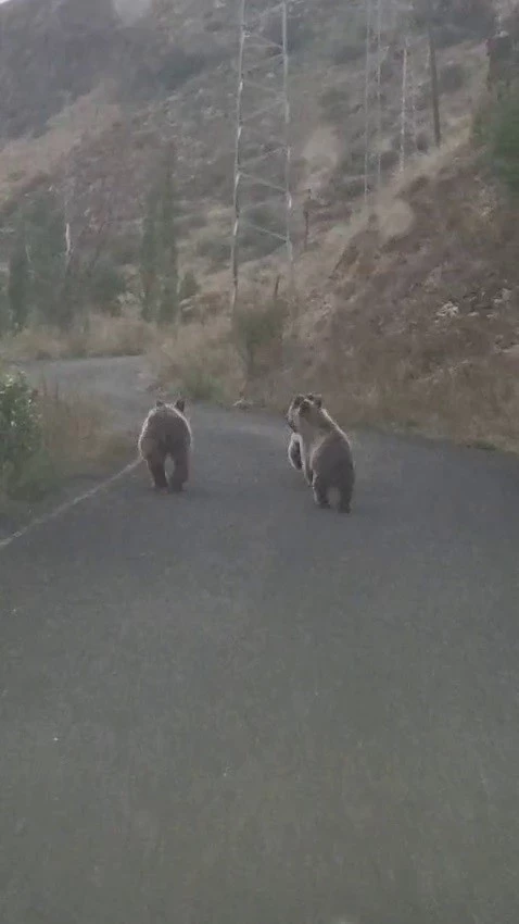 Bir süre otomobilden yavru ayıları takip eden sürücü ayıların araziye yönelmesinden sonra yoluna devam etti.