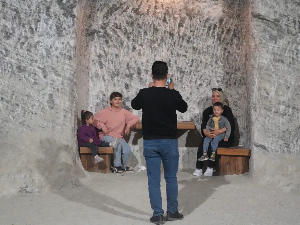 Mağarada rahat nefes aldığını belirten Zeliha Tekercioğlu, "Tuz mağarasına Ankara’dan gezmek için geldim. Burasının şifa kaynağı olduğunu da öğrendik. Burası insana huzur veriyor, nefes alışını ferahlatıyor. Güzel bir yer" ifadelerini kullandı.