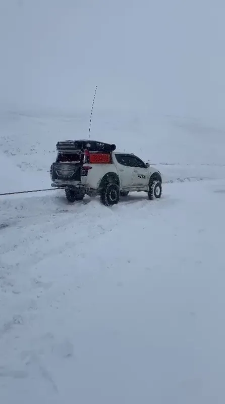 Erzurum’un Tekman ilçesine bağlı Düzyurt Mahallesinde kar ve tipi nedeniyle yolda kalan sürücü Macera Off-Road ekibinin yardımıyla kurtarıldı.
