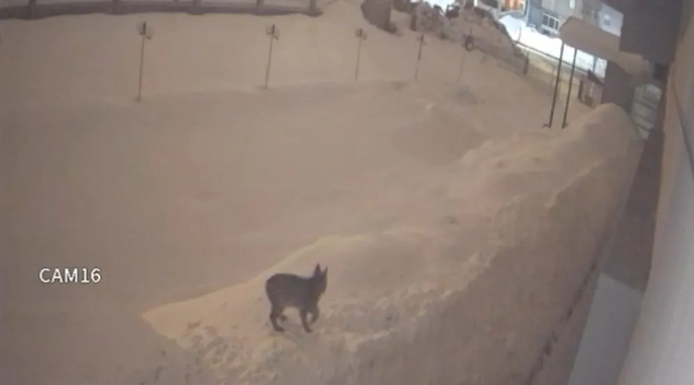 İpekyolu Caddesi üzerinde faaliyet gösteren bir düğün salonunun bahçesine gece saatlerinde giren vaşak, karla kaplı alanda bir süre yiyecek aradı. Çevrede kimsenin olmadığı sırada bahçede gezinen yabani hayvanın o anları, saniye saniye güvenlik kamerasına yansıdı.