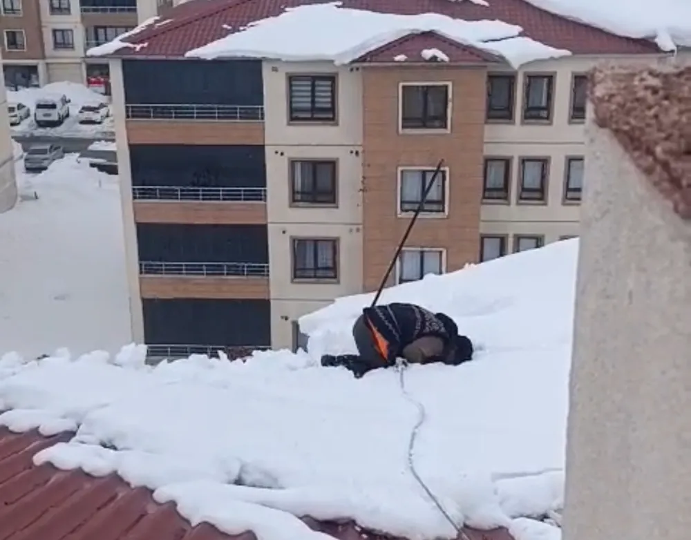 İlçe merkezinde kar kalınlığının 1 metreyi, yüksek kesimlerde ise 3 metreyi bulmasıyla hayat durma noktasına geldi. Binaların çatılarında biriken dev kar kütleleri, vatandaşları temizlik mesaisine yöneltti. Esentepe Mahallesi'ndeki Pizok TOKİ konutlarında kar temizliği yapan Tahir Yıldız, 8 katlı binanın çatısında çalıştığı sırada ikindi ezanı okundu. Vaktin geçmemesi için aşağı inmeyen Yıldız, montunu karın üzerine sererek namazını kıldı. O anlar, çalışma arkadaşı Yılmaz Akdoğan tarafından cep telefonu kamerasıyla kaydedildi.