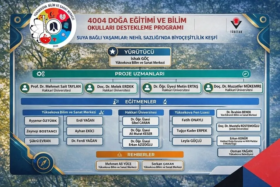 Projenin akademik derinliğini sağlamak amacıyla Hakkari Üniversitesi’nden Prof. Dr. Mehmet Sait Taylan, Doç. Dr. Melek Erdek, Dr. Öğretim Üyesi Metin Ertaş ve Doç. Dr. Muzafer Mükemre uzman olarak görev alacak. Ayrıca Yüksekova Fen Lisesi ve çeşitli kamu kurumlarından eğitmenlerin de yer alacağı projede, rehberler eşliğinde bilimsel gözlemler yapılacak. Yüksekova’nın bilimsel projelerle tanıtılmasına katkı sunması beklenen çalışmanın, bölgedeki gençlerin doğa bilimlerine olan ilgisini artırması ve ekolojik bilinci güçlendirmesi hedefleniyor.