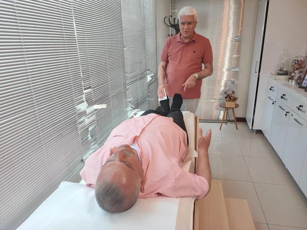 Hatay’da yürüteçle bile yürümekte zorlanan bir kişi Beyin, Sinir ve Omurilik Cerrahisi Uzmanı Prof. Dr. Orhan Şen’in uyguladığı ilaç tedavisi ameliyat ile yürüteci atıp normal insanlar gibi yürümeye başladı.